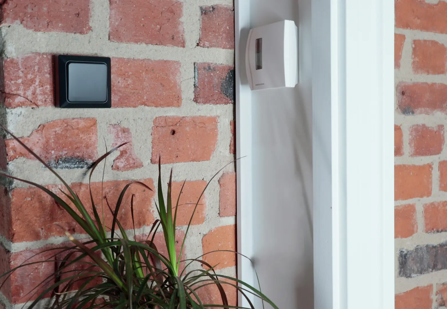 Musta Harju HIILI kytkin 1/6 näyttää tyylikkäältä myös tiiliseinää vasten.